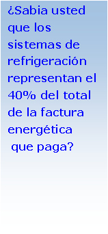 Le ofrecemos alternativas de reducción de costos fijos y ahorro de energía, sustentabilidad, mejora en la eficiencia, asistencia técnica, auditoria técnica, calculo y diseño de nuevos proyectos y programas de mantenimiento referente a instalaciones de refrigeración, aire acondicionado, ventilación, calefacción y sistemas electrónicos de control de energía e iluminación. |